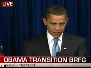 [cnn-photo-caption image= http://i2.cdn.turner.com/cnn/2008/POLITICS/11/07/obama.seance/art.obama.afp.gi.jpg caption="Watch Obama announce his economic team on CNN.com/live."](CNN) - President-elect Barack Obama is announcing his economic team in Chicago.