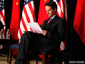 [cnn-photo-caption image= http://i2.cdn.turner.com/cnn/2009/POLITICS/05/31/china.geithner/art.geithner.jpg caption="U.S. Treasury Secretary Tim Geithner will push for better relations with China."](CNN) - Treasury Secretary Tim Geithner is set to meet with several high-ranking members of the Chinese leadership this week, marking the Obama administration's first major overture to the powerhouse nation.